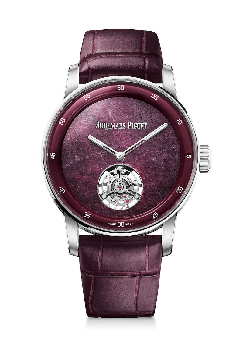 將硬石裝飾於面盤的歷史可以追溯至文藝復興時期,1960年代起的 AP 也開啟探索寶石的美學工藝,全新推出 Code 11.59系列自動飛行陀飛輪錶,以紅寶石根(搭配18K白金錶殼)、藍色方鈉石(搭配18K玫瑰金錶殼)、綠色孔雀石(搭配18K黃金錶殼),三款限量錶作,遙敬這項工藝故事。寶石面盤的自然紋理、色澤光采各異,在悉心揀選和拋磨後更顯綻放,而每一枚都是獨一無二的存在。寶石的美還在情感價值與其蘊含的能量,與複雜功能機械錶、中性尺寸錶徑相結合、輝映,帶來另種風格魅力。