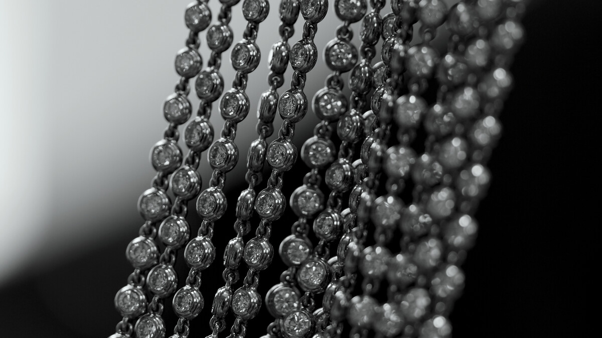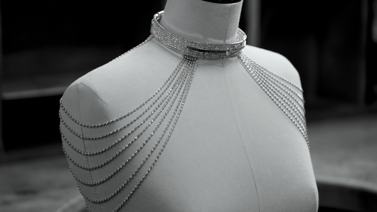 六種穿戴形式:項鍊與雙肩飾的結合、兩件肩飾/胸針、雙層長鍊(sautoir)、兩條項鍊、圖形頸鍊、手環,展現多元自由的風格可能。工藝挑戰在於多處隱秘的鎖扣機制;鍊節超過七公尺,由2,500 顆圓形切割鑽石包鑲構成;頸鍊整體鋪鑲百餘顆長方形切割鑽石,並以階梯式排列鑲嵌,更顯層次立體。
