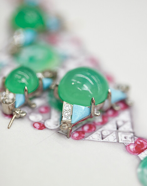 2026卡地亞頂級珠寶焦點新作04:Ondora,白 K 金鑲嵌綠玉髓、尖晶石、綠松石與鑽石