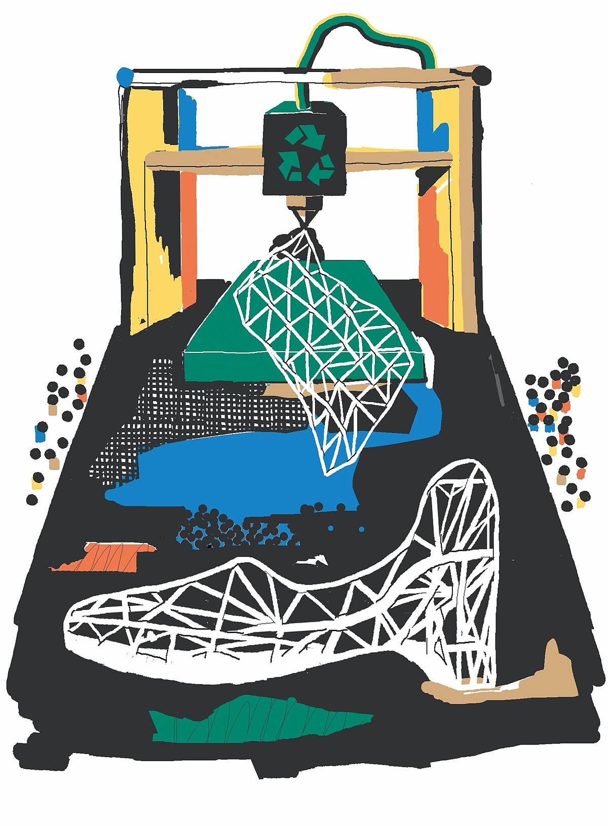 事實上許多品牌最初使用3D 列印,比起環保,更可能是看上它的效率,而「永續」則可說是附加效益。3D 列印的最大優點在於減少材料浪費,突破傳統的「減法製造」,不再有邊角料的產生,而「零浪費」正是實踐永續的開端;即時性特質則能達到按需生產,有需求、才製造,減少庫存和丟棄浪費,在不遠的未來,甚至可能走向提供顧客自行下載列印的服務。