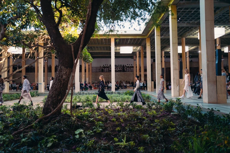 融合了時尚、藝術、舞蹈及電影等文化,此次 2022/23 Métiers d'art 工坊系列《香奈兒-達卡》的大秀舞台,大量的線條、幾何、圖騰與廊柱環繞的內庭花園相互呼應。