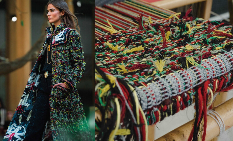 2022/23 CHANEL Métiers d'art 工坊系列便有許多設計是 Montex 刺繡工坊、Lemarié 山茶花羽飾工坊、Lognon 褶飾工坊、Lesage 刺繡工坊、Paloma服飾面料加工坊通力合作的作品。像是這件由 Lesage斜紋軟呢工坊與 Lemarié 山茶花羽飾工坊聯手打造的外套,色彩強烈的斜紋軟呢是對達卡傳統服飾的致敬,領口與袖子上則有繁複的山茶花刺繡拼接,特別的是這些山茶花所採用的面料,全都來自過往系列所使用過的布片,眾所皆知CHANEL 的山茶花瓣流暢、立體的弧度,得靠工匠一片、一片地用手工悉心打造,而這些局部裝飾的山茶花總計耗時493小時才完成,真的不得不佩服工匠們的功力與專注力!