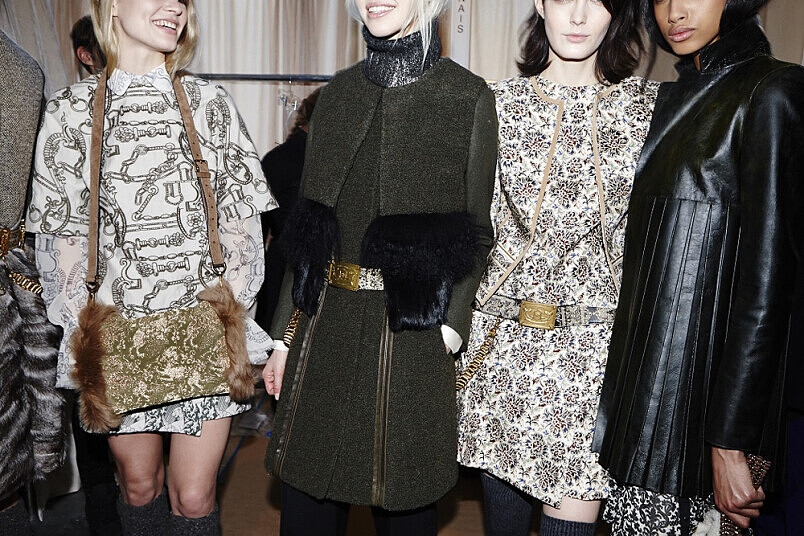 而配件部分則利用與鍊帶搭配的皮帶、繫帶高跟鞋、皮草與華麗錦緞搭配的暖手套,細膩地呼應系列主題,同時巧妙襯托服飾高雅的迷人氣息。