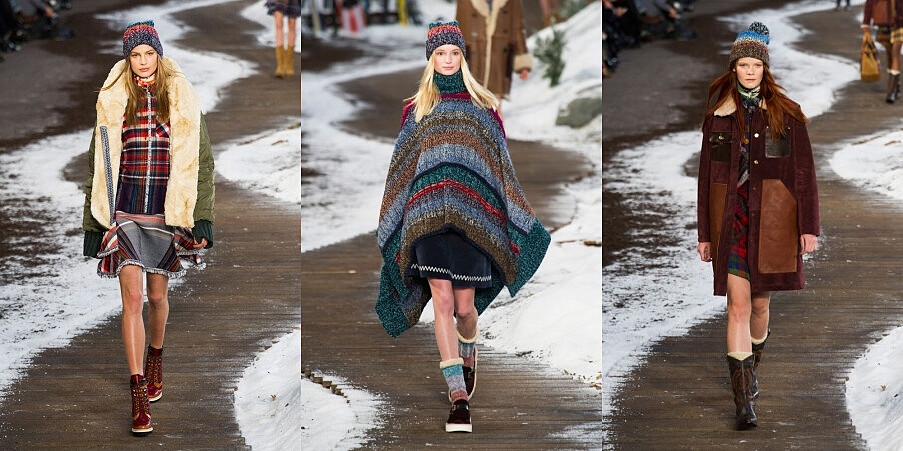 2014年秋季女裝系列中,Tommy Hilfiger將場景搬到戶外拓展訓練,汲取壯麗的美國野外風光為創作靈感,為有探險精神的年輕女性重新詮釋一系列充滿奢華感的專業登山裝備及西部風格工作服,使用深色方格面料呈現,散發出澎湃驚豔的青春氣息,濃郁的波西米亞風情表露無遺。
