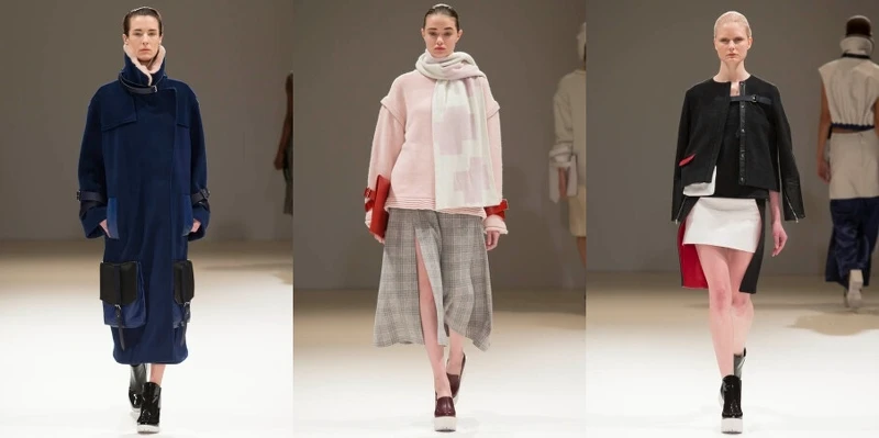 Jamie Wei Huang 2014 AW 以一貫的精湛做工與簡約剪裁,二戰期間鋼琴家背景作為故事主軸。當時二戰波蘭難民在環境變遷之下,他們也許曾為音樂家,畫家,教師....既使被標簽勞工苦做,也從未因此改變。仍然為真實的自己有自我原則。運用男裝剪裁及女裝細節並以極度厚重的材料與精緻做工,交織出即便面對艱困環境、外力迫害,這些人依舊保留他們引以為傲的自我意識以及原則。 2014秋冬,以披上巨大尺寸的男裝,結合牛皮扣帶的無肩洋裝等,展現所有故事的呈現。在冰天雪地生存的強大對比之下,曾備受珍惜的物質們不再以美觀為導向,而是為了保暖以及生存。