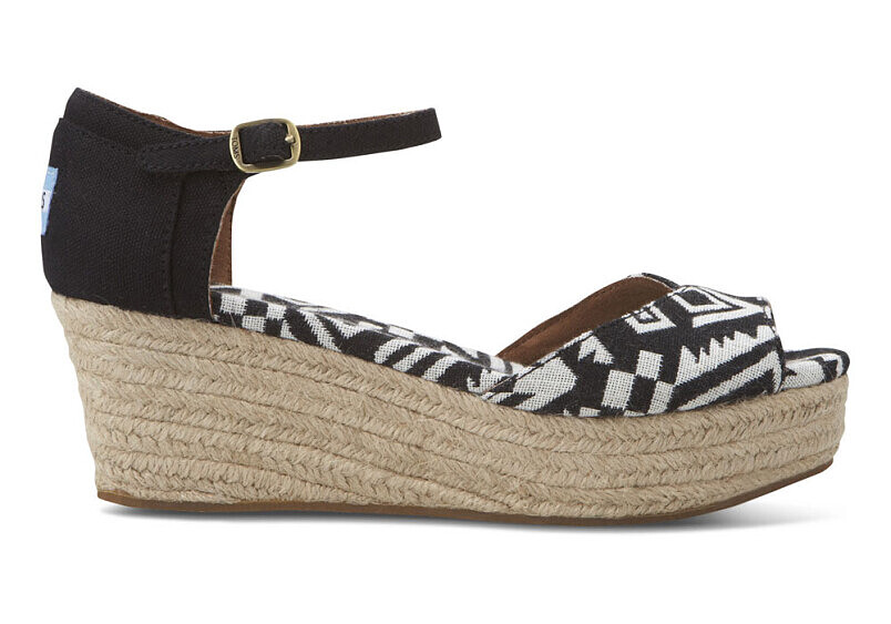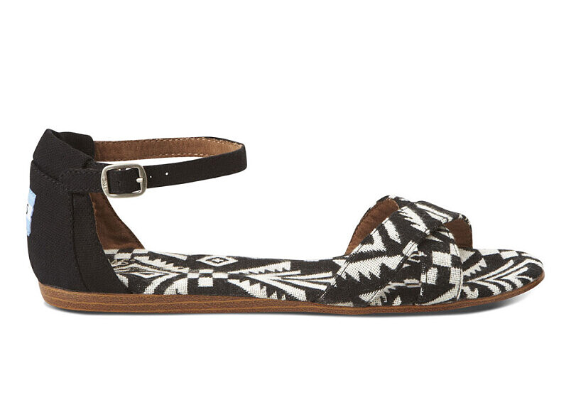 除了厚底以外,不習慣穿厚底鞋的女性們也有另一個選擇:與厚底涼鞋同一系列的摩登黑白花紋也有出平底涼鞋 ( Black Woven Women's Correa Sandals ) 。這款平底涼鞋底部則是採用木頭紋路來做造型,推薦給喜歡極致簡單輕鬆的妳。這兩雙鞋同樣都是全程採用非動物性素材製造,Toms除了關懷世界上的小朋友以外,也同樣的關懷世界上的動物們!