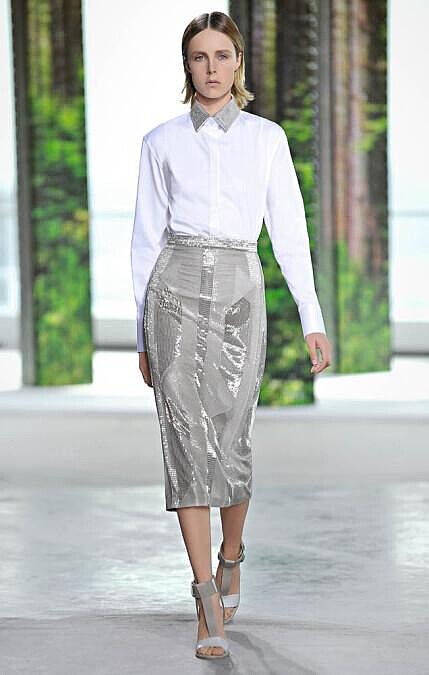 此次佔據品牌主要地位的BOSS男士西裝和襯衫出乎意料地成了新系列的靈感來源,注入輕盈和飄逸的元素。其中縫合線作為一種裝飾元素,勾勒廓形,將清爽的白色禮服襯衫,加長做成襯衫式連衣裙,或與美麗並賦裝飾性的短裙搭配,打造晚宴的時髦裝束。