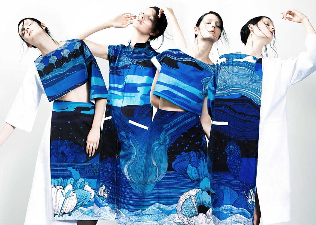 - 印花設計:與品牌合作四季的設計師吳盈,本次特別創作奇幻風格的手繪圖像,為詹朴擅長的東方元素帶來玩味衝突感。