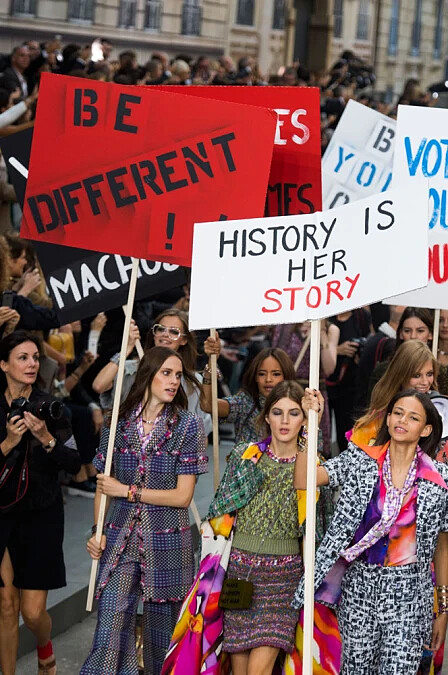 關於女性長期受到的不平等對待,Karl Lagerfeld 為了吸引眾人再度關注這次的議題,大膽地將政治與時尚結合。「我不懂人類為什麼會有階級之分,」他說:「尤其是在時尚產業中這項議題更為嚴重。」