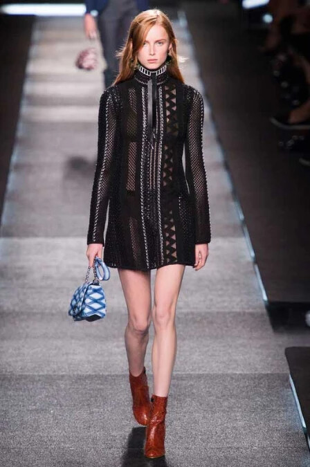 Nicolas Ghesquière 藉由創新技術,將手工製作技藝進化到與高科技相結合。不同織法的結合更是工藝技術的一項挑戰!像是將勾織的不同織法拼接於同件服裝上,展現細膩層次。