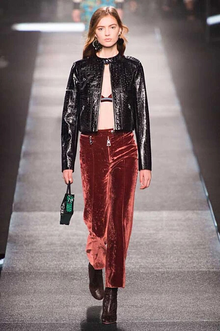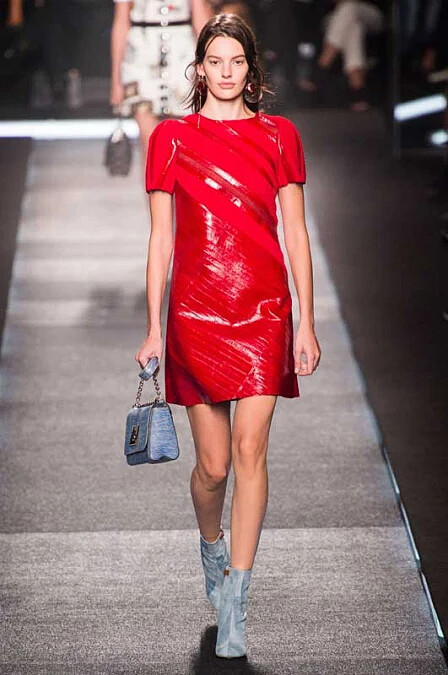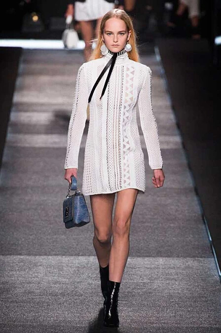 - 創新材質拼接:運用純色皮革與針織結合,或是荷葉邊裝飾蕾絲與亮片拼貼,將手工技藝與高科技面料完美融合。