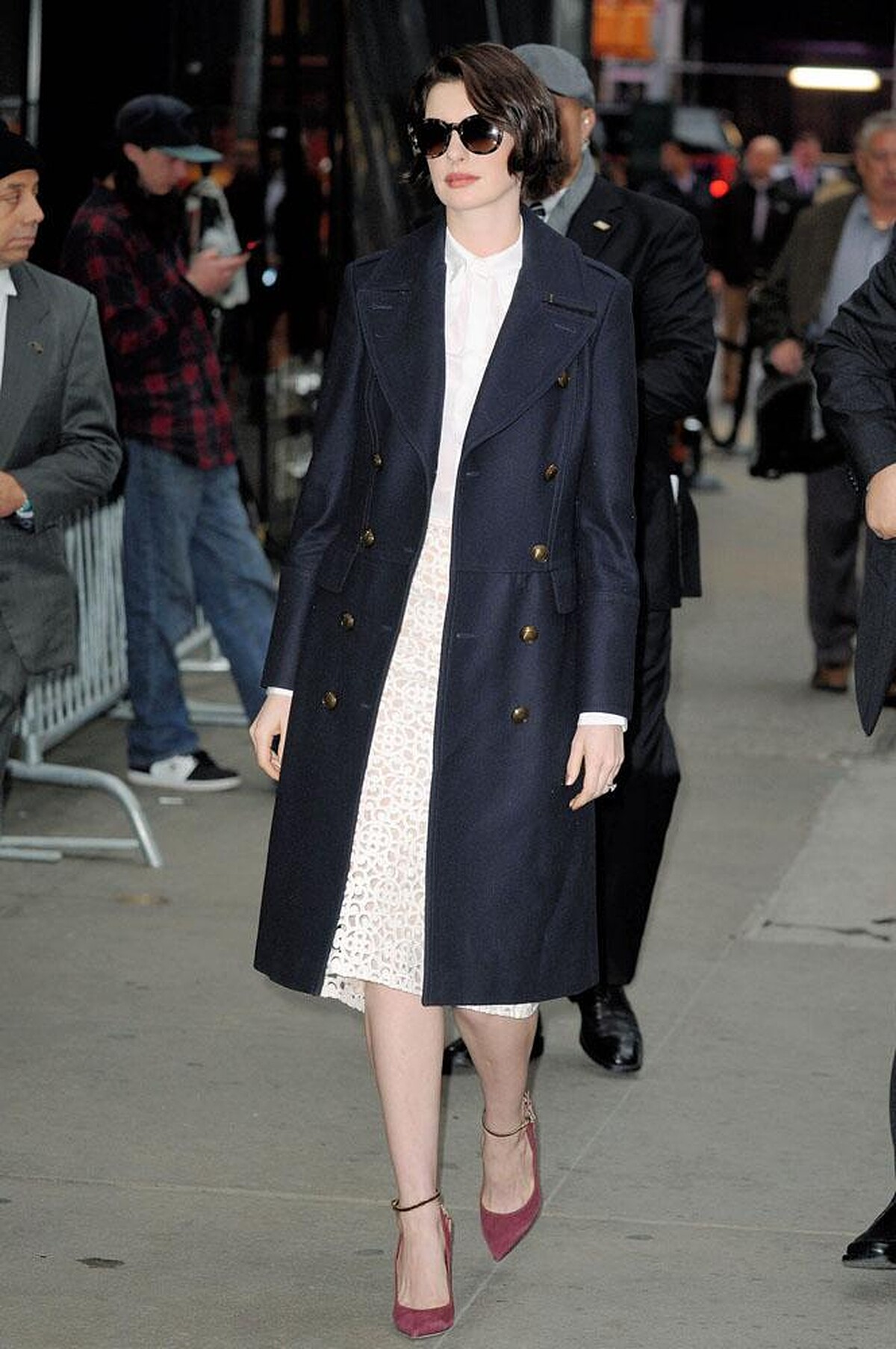 1. 優雅派首選:安海瑟薇的「雙排扣大衣」