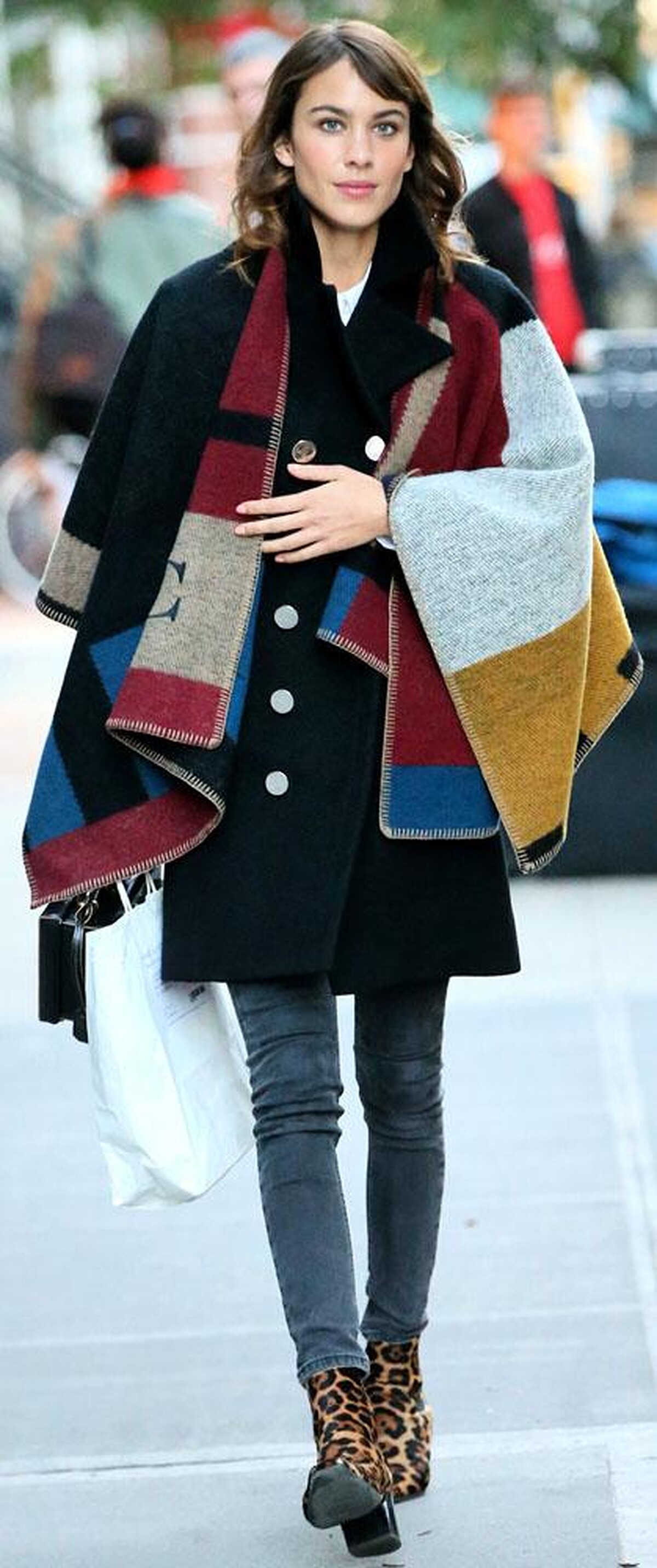 而今年熱銷的 Burberry 色塊拼接毛毯式斗篷,則出現於英國 IT Girl — Alexa Chung 的身上。