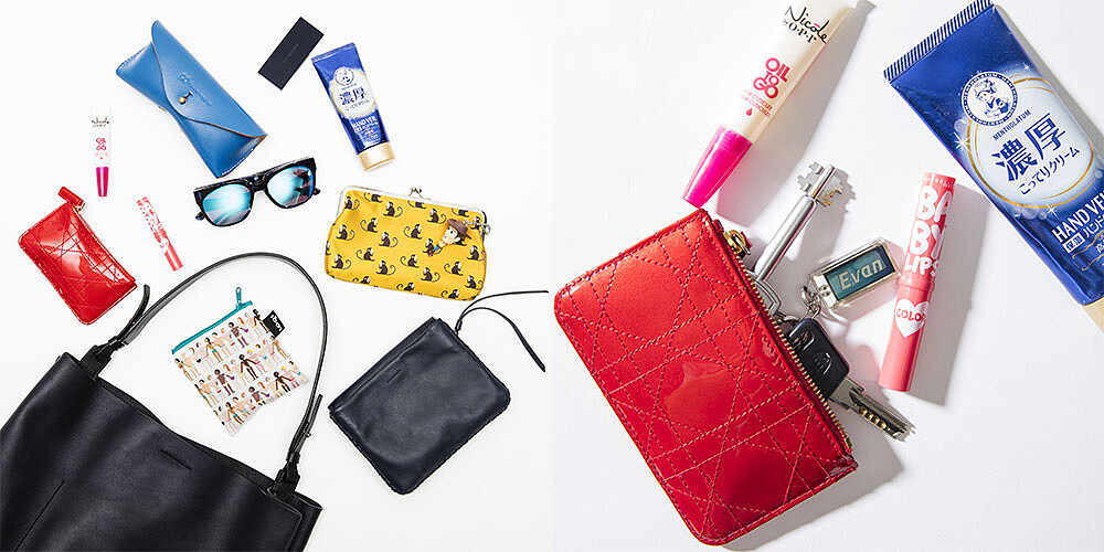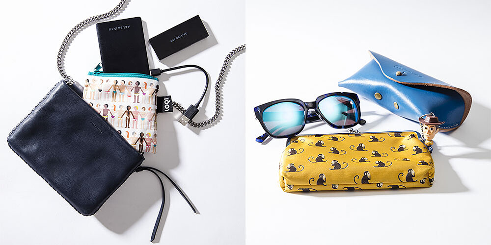 包裡一定要放一個可以揹的袋中袋,最近愛用的這款AllSaints小包就有鏈帶很方便,有時候吃午餐簡單放些零錢和公司門禁卡,直接揹著就能出門,也很輕便。還有最不可或缺的就是行動電源,習慣也用小袋子收著;墨鏡則是來自模特兒張珈瑜的自創品牌CHANG CHIA YU,喜歡它的大框款式很修飾臉型;黃色的袋子則是在東京買的,用來收納一些發票和收據類的紙單,上頭的胡迪吊飾因為長的很像老公,所以就掛著囉~