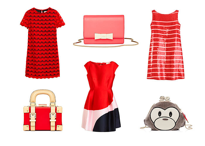 鮮紅色的連身裙又或是領口缀滿水晶的紅色修腰背心裙,讓妳喜氣洋洋迎佳節。此外,領口飾有水晶的毛衣配搭鮮紅色及膝裙,造型同樣出眾。