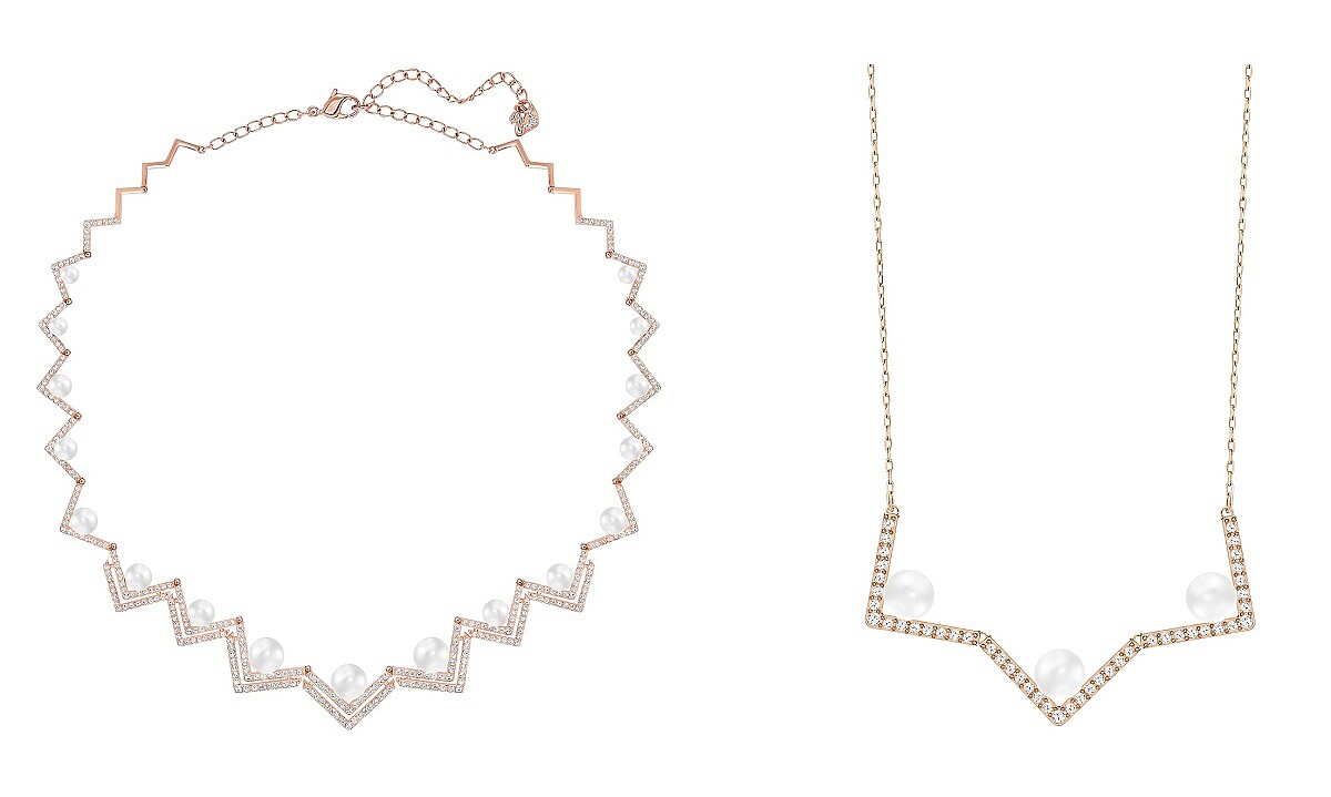 由品牌靈感缪斯米蘭達‧凱爾(Miranda Kerr)所示範的Edify項鏈,以典雅迷人Delta系列為藍本,於別具特色的V形設計上,綴有以獨有技術製作而成的柔和悅目的Swarovski水晶珍珠,珍珠元素加上閃爍耀眼的密鑲水晶與亮麗時尚玫瑰金,展現出無可比擬的光彩。