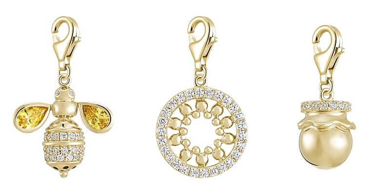 以蜜蜂為題的一系列墜飾,包括小蜜蜂、蜂巢、蜂糖、六角幾何、蜜糖攪拌棒等,精巧趣緻,女性們可按喜好隨意配搭,打造獨特的手鍊。