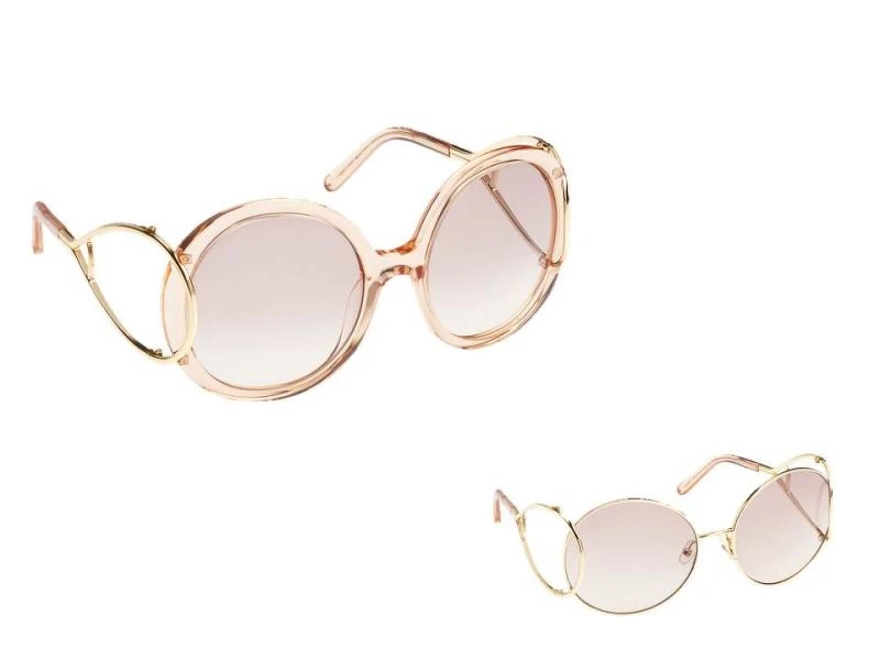 不論是膠框琥珀或單色,這種帶點復古設計的太陽眼鏡,基本上對大部分的臉型與鼻樑高度,都算中庸選擇,不太會壓兩頰顴骨以及鼻樑上的太陽眼鏡一直滑落(k編很討厭夏天已經很熱,汗流不止,還要一直推鼻樑上無止盡滑下的太陽眼鏡,這樣很不時髦ㄋ)。而下面這款今年春夏Chloe新款太陽眼鏡,邊框大圓弧鏡架設計,於復古之中,加上些些趣味的細節,而且大圓框鏡片,也是K編個人心中默默打勾的選項,不過這款設計對於顴骨過高的女孩們要小心試戴看看,因為他鼻架部分並沒有很高,有可能會出現,顴骨架高整副太陽眼鏡的悲劇....