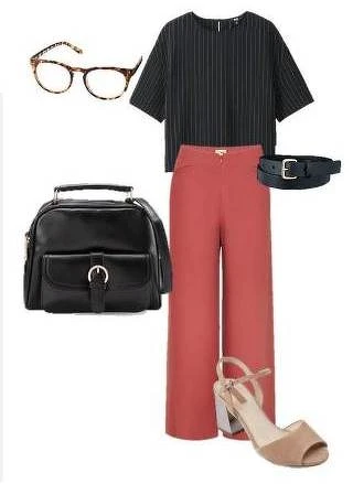跟老闆開週報會議,總不能還在懶散穿著吧!短版西裝料上衣,增加正式氛圍,再挑件 Hana Tajima For Uniqlo 聯名款珊瑚紅寬版長褲,搭著簡約線條的配件,福鞥行肩背包與琥珀鏡框眼鏡,走不浮誇的專業路線喲!!