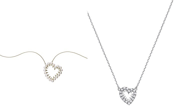 除了選擇鎖頭造型的對鍊,還有以晶瑩淨白的珍珠與璀璨閃耀的鑽石為主的danger heart diamond系列,以「維納斯的捕蟲陷阱」之稱的食肉植物為靈感,將鋒利的尖刺從心臟中竄出的輪廓,做成心型項鍊,也暗喻了愛情關係中隱藏著令人心動的誘惑之美、危險而美麗,兩款心型吊墜上鑲入的珍珠與鑽石,隨著情人間的心,交織出另一段愛情故事。