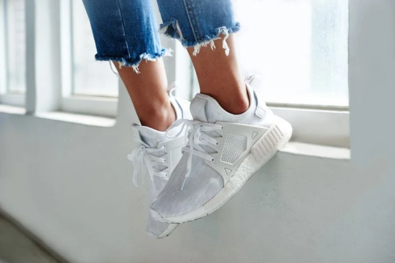 白色條紋的NMD_XR1是以較明顯的線條打造出視覺主體,淺淡色調選用呈現出高級灰的與眾不同,選擇與牛仔褲或裙裝的組合,都能穿出一股隨性自在的時尚歐美街拍LOOK。