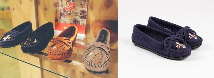 本次一樣選擇了 Minnetonka 長久以來最受歡迎的 Kilty Suede 莫卡辛便鞋作為設計雛形,運用她富有流行感與童趣俏皮的創意,結合法式珠繡技術,今年秋冬並以可愛的小狼圖騰為串珠設計,左右腳分別以星星與月亮作可愛的搭配,唯妙唯肖的精緻手作工藝結合經典美式民族風格,美得令人屏息。