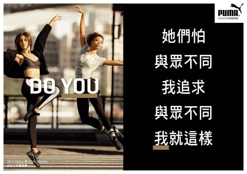 接下來,超模卡拉將引領多位知名女性接續於「我,就這樣」廣告中現身,其中包括紐約市立芭蕾舞團的知名舞蹈巨星Mimi Staker、Olivia Boisson、德國田徑運動員Alexandra Wester和Tatjana Pinto,還有古巴排球好手Leile Consuelo Ortega Martinez與Lianma Flores Stable等,展現Puma「Do You」的暢快時尚魅力。