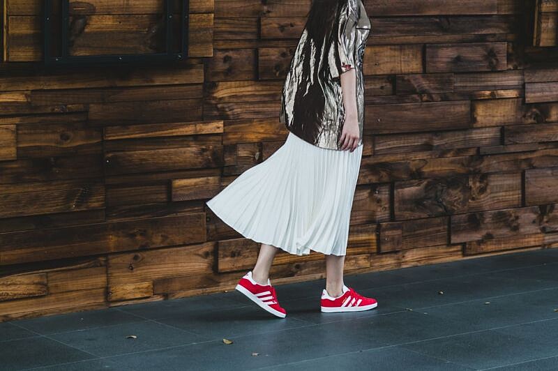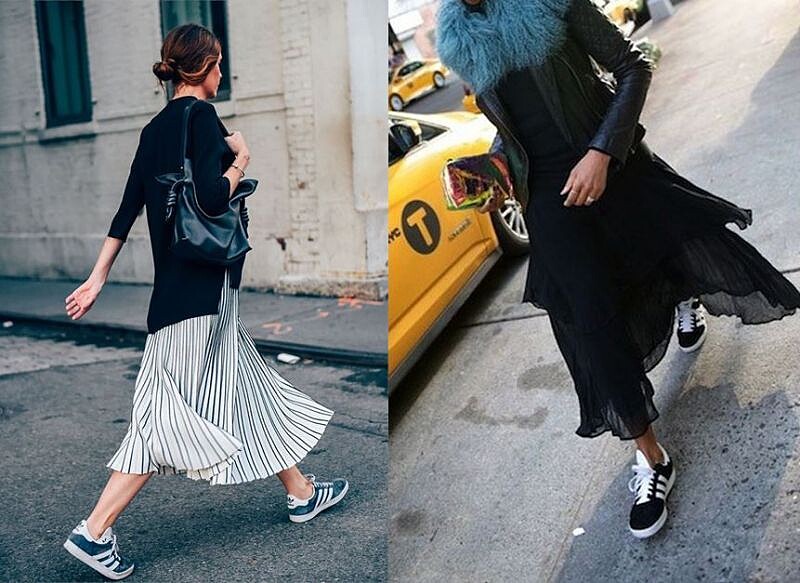 ↓正當火紅的長裙Style與Gazelle出奇的合拍!時裝周上的街拍隨處可見這樣的混搭趨勢,無論是搶眼個性、輕靈飄逸、甚至是英倫格紋風,只要套上Gazelle,小編保證妳通通都能消化得輕輕鬆鬆。