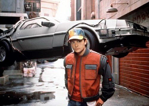 不過,編看到這裡,覺得模特兒有著回到未來第3集,男主角坐著飛天車回到未來那一幕,炫彩鴨舌帽與Oversize外套搭著未來感鞋子唷!!還蠻妙!