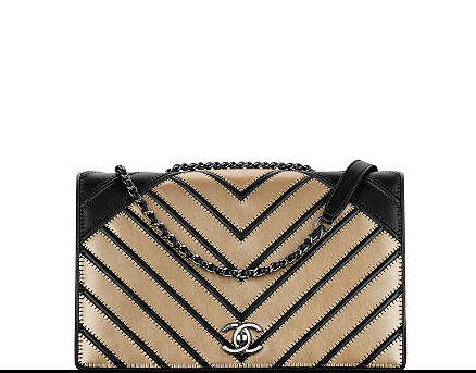 以拼接皮革的方式加上鍊帶,這款方包帶點小男孩氣息,但是有香奈兒女士所愛的米色黑色配置,絕對催購啊。