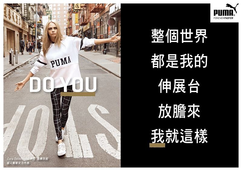 你是否注意到,一股全新、強勁的女力運動宣言正在全球發燒?它告訴妳,不要被既定的框架捆綁、別受外在眼光限制,只要勇敢做妳自己,就能得到最美好的快樂!全球知名運動品牌PUMA的「Do You! 我,就這樣!」正是這樣激勵人心的女力宣誓。由流行音樂天后蕾哈娜的靈感發想,包含搞怪超模卡拉達克芬尼(Cara Delevingne)、華裔超模劉雯,都在這次的特別企劃中,以堅定的眼神、完美的肢體,為Do You精神做出精湛演繹。