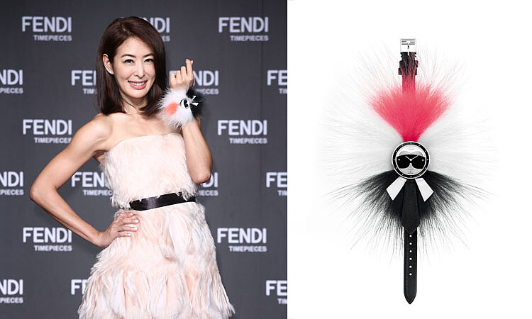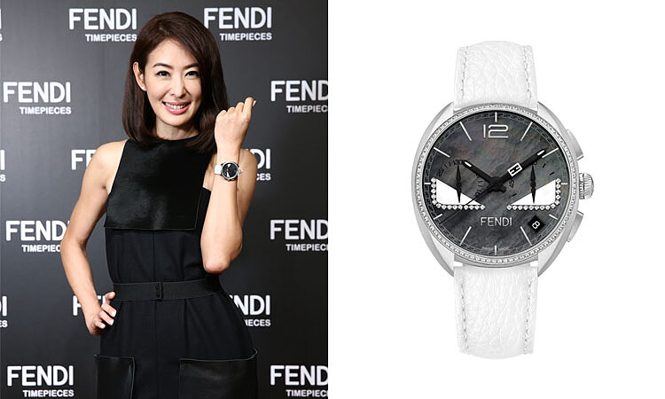 另一個重點錶款Momento Fendi Bugs系列,以不同的錶盤、錶面細節來襯出配戴者的氣質。賈永婕手上的小怪獸錶,黑色珍珠母貝錶盤盡顯高貴,鑽石眼線使小怪獸獨樹一格的眼神變得閃爍迷人,塑造女性動靜皆能散發魅力的一面,腕間小怪獸的炯炯有神亦表現出獨到的自信。
