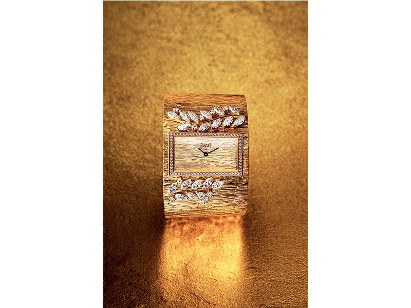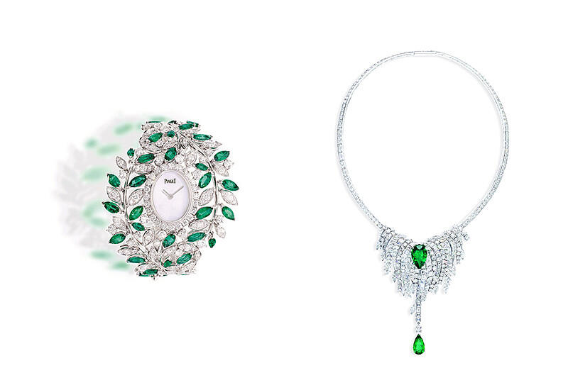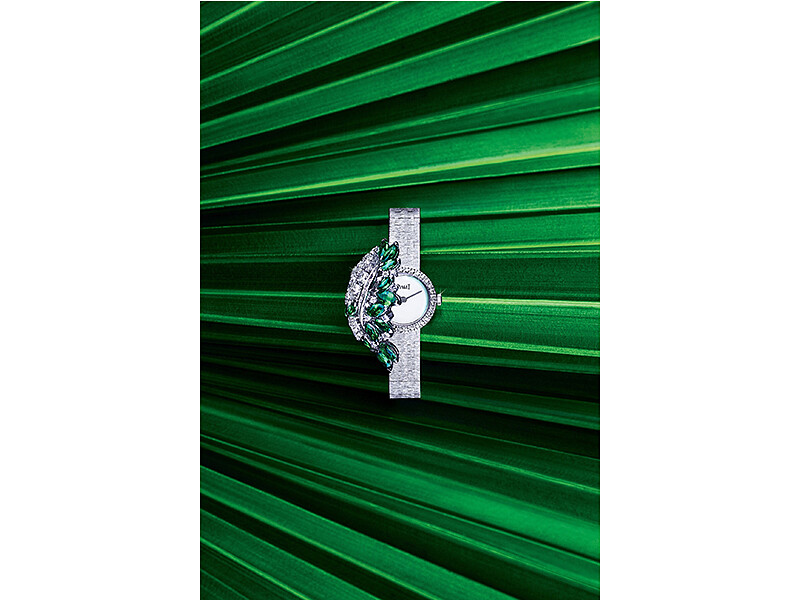 宛如和熙陽光光芒的黃鑽鑽戒與腕錶,又或是透過手工雕刻工藝營造出獨有的細緻纖維與不規則紋理的「宮廷裝飾」打造的18K玫瑰金腕錶與珠寶項鍊等,讓Sun Light照映出夕陽泳池畔旁璀璨迷人的珍貴時刻。衍生自度假勝地中的植物靈感,Lush Nature透過婆娑樹影的悠閒意境讓珠寶腕錶呈現令人目不轉睛的華麗美態。例如以棕櫚樹為設計概念的項鍊,兩顆各重7.17及4.35克拉的珍貴梨形切割哥倫比亞祖母綠寶石妝點在耀眼光彩鑽石所勾勒出的植物輪廓;又或是以蒼翠的祖母綠寶石和鑽鑲葉片的手鐲腕錶以及精細蛋面切割贊比亞祖母綠寶石閃爍在鐫刻金質棕櫚葉的神祕錶,搭配運用伯爵鍾愛的馬眼型切割技術,讓珠寶更貼近大自然的美態,透過閃耀的火光呈現出獨具風情的藝術美學。