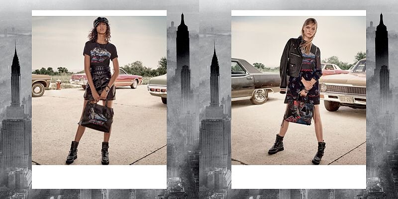FASHION流行快報2017早春 Coach女孩魅力玩酷由時尚攝影大師Steven Meisel掌鏡的Coach 2017早春系列形象廣告,以1940年代電影浪漫的復古氛圍,襯托帶點叛逆個性的Coach女孩,藉由對比視覺,傳遞新一季混搭紐約風格的各種可能性。by 美麗佳人編輯部-2019/07/09更新Photo/Coach擅長以充滿張力的影像堆疊出故事情節的攝影大師Steven Meisel,早春以復古跑車、布魯克林區與紐約天際線的大樓輪廓,描繪出「Coach Gang」主題氛圍的美國夢。鏡頭中,個人風格鮮明的新銳模特兒Rianne Van Rompaey、Roos Abels、Jing Wen、Yasmin Wijnaldum,換上早春最新服裝配件玩酷,Varsity夾克與皮褲、騎士皮夾克、美式格紋拼接碎花圖樣洋裝,有著汽車或卡通圖案的復古上衣,率性搭配上騎士短靴、掛著Rexy恐龍吊飾的鉚釘Rouge手袋,在衝突細節中展現叛逆性格,突顯穿著者的獨特魅力。由Coach執行創意總監Stuart Vevers所打造的早春系列,融合野性與浪漫情懷的叛逆女孩風格深受眾多女星喜愛,像是超殺女Chloe Moetz、時尚Icon Kate Moss、英國時尚名媛Poppy Delevingne、人氣小天后Selena Gomez,以及霸氣呸姐蔡依林,紛紛搶先穿上新裝入鏡,展現個人風格。