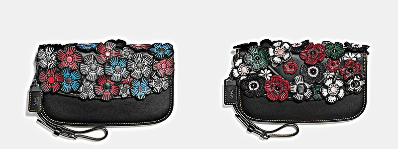 包款上一朵朵綻開的茶香玫瑰,是品牌經典棒球手套鞣製皮革的奢華呈現,模切皮革立體貼花手法的工藝質感,運用鉚釘鑲貼、珠飾刺繡豐富其細節,繽紛色彩的妝點,更堆疊出精緻細膩品味。