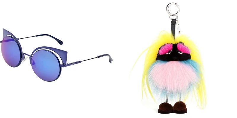 (左)藍色貓眼造型墨鏡 (右)Bag Bugs人偶吊飾