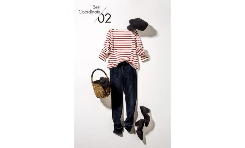 選一件色彩明亮的海軍風條紋上衣,簡單的搭配牛仔褲裝與報童帽,法式女孩風就是你。