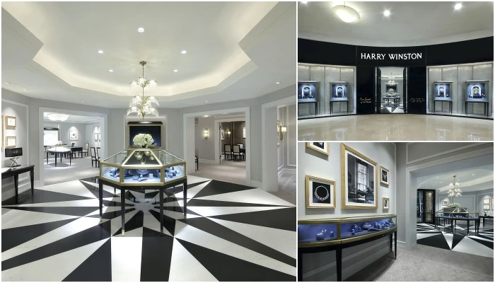 在101開幕的Harry Winston專賣店佔地更廣,並將展區分成頂級珠寶、婚嫁珠寶與高級腕錶系列,收納更多璀璨珍稀的頂級寶石。以雅致柔和的灰褐色與淺灰色調,結合現代美學打造低調又奢華的空間。搭配量身打造、綴以古銅雕花的典雅黑色烤漆傢俱,以及宏偉壯觀的頂級訂製水晶吊燈及手工織成的絲質牆面,營造完美的奢華氛圍。進到店裡不僅讚嘆珠寶之美,就連購物空間也絕對會讓你大開眼界。