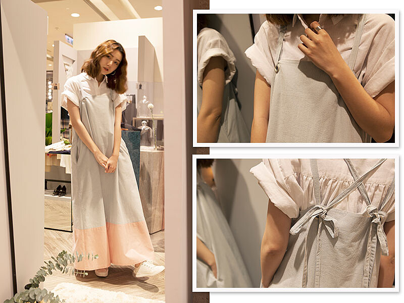 青葉嫩綠染上一抹粉嫩草莓紅的NEUL吊帶連身裙,搭配上同品牌的麻料綁帶襯衫,透氣質材與寬鬆的輪廓,適合休閒假日與好友們共度的野餐時光。