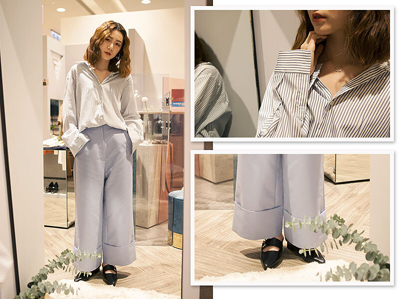 條紋襯衫是每個人衣櫃中都該有的百搭單品!你可選擇像是版型較為寬鬆的ETHOSENS藍條紋襯衫,搭配熱門的1/2 UN-DEMI 淺藍寬褲,再搭上NULL LEE的鎖骨項鍊展現頸間性感線條,穿出不同以往的獨特與個性。