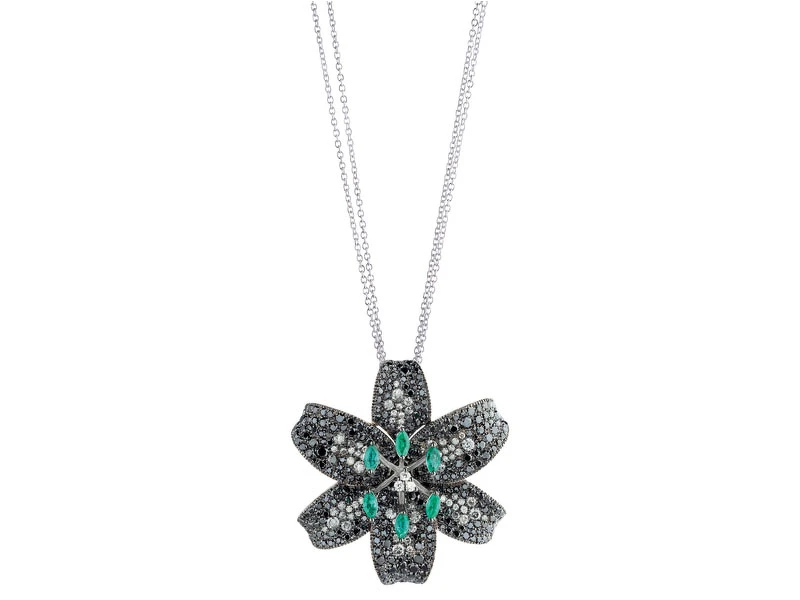 Giglio百合花系列白鑽、黑鑽與祖母綠寶石項鍊 。