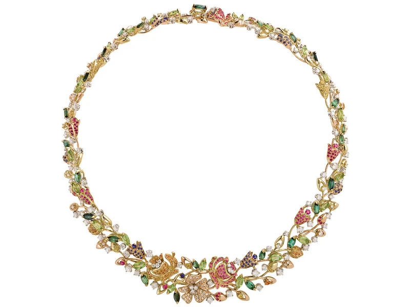 以春天裡遍地鮮花草地為創意靈感的Springtime春天系列,透過繽紛奪目的彩色寶石搭配貴重金屬,展現出花朵與綠色枝芽的立體感,讓充滿生命力的珠寶帶來令人歡欣愉悅的溫暖氣息。