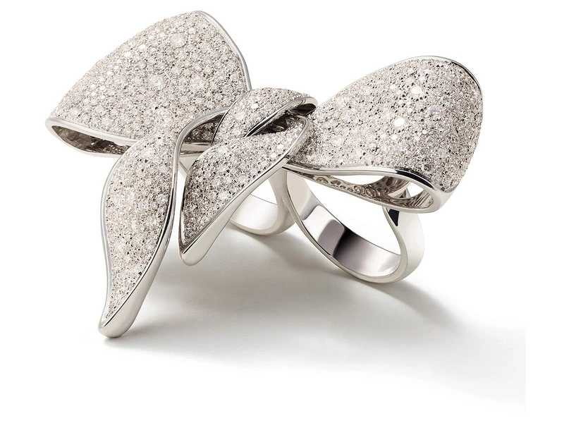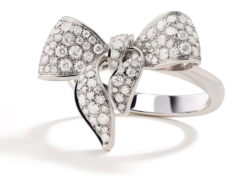 Fiocco蝴蝶結系列白金鑲全鑽戒指。