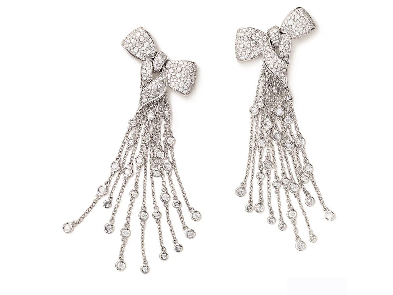 Fiocco蝴蝶結大師系列白金鑲全鑽垂墜耳環。