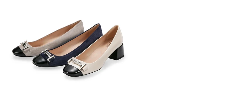 可正式亦可搭配休閒造型的雙色拼接跟鞋,新一季也裝飾上TOD'S經典象徵的Double T飾釦,為復古典雅的氣質加入更具個性的時尚元素。