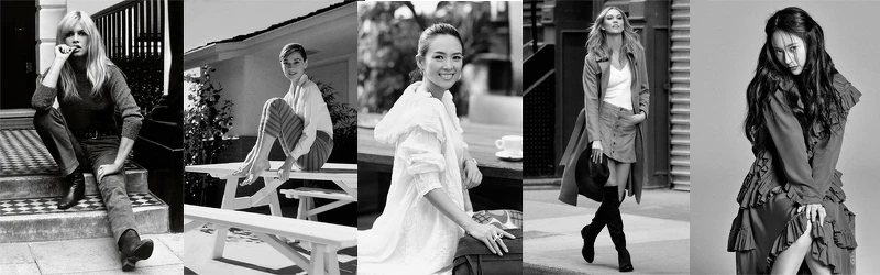《Timeless Icons》影像書女士版本的名人包含了(左至右):碧姬芭杜(Brigitte Bardot)、奧黛麗赫本(Audrey Hepburn)、卡莉克勞斯(Karlie Kloss)、章子怡與鄭秀晶(Krystal)等