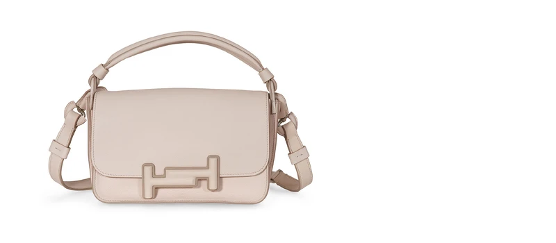 Double T系列包款簡約俐落的輪廓線條,向來是造型百搭的必備選項之一,其繁複的製作過程,從皮材挑選、剪裁切割,到皮革縫紉拼接、雙T飾釦,都需要技藝精湛的皮革匠師親自執行,才能成就代表品牌DNA的完美工藝。春夏新登場的Double T Bag,有了迷你、小型以及中型等更多樣化的尺寸,包覆上皮革的雙T飾釦包款,有別於金屬飾釦搭配金屬鍊帶的優雅都會氣息,呈現更活潑的休閒時尚風格。
