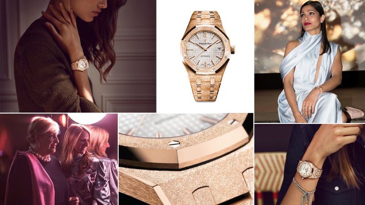 愛彼與義大利珠寶設計師卡洛琳娜・布奇(Carolina Bucci)攜手設計的皇家橡樹女裝腕錶系列Frosted Gold霜金錶款。