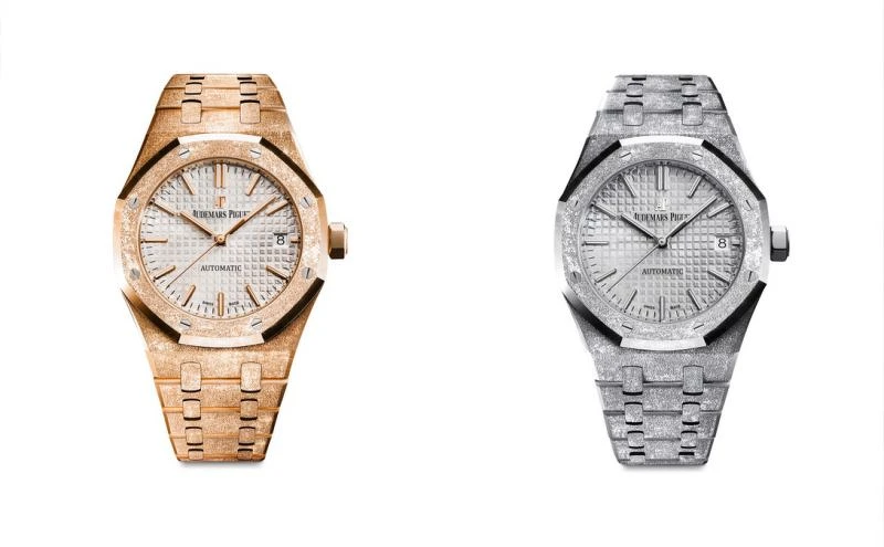 2016年底,愛彼發表了與義大利珠寶設計師卡洛琳娜・布奇(Carolina Bucci)攜手打造的Frosted Gold霜金錶款,結合古老珠寶技藝與鐘錶工藝的全新設計,為經典再添華美閃耀光彩。為了彰顯愛彼製錶工藝的極致,卡洛琳娜・布奇特別採用了傳承已久的古老黃金錘擊技法,也就是佛羅倫斯技術,在表面精修處理細微的凹痕,透過光線折射出如寶石般微光粼粼的閃爍效果。
