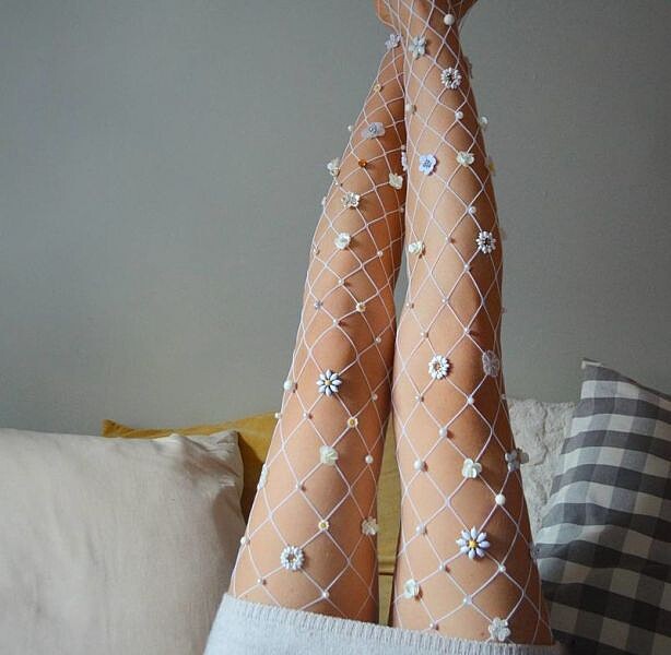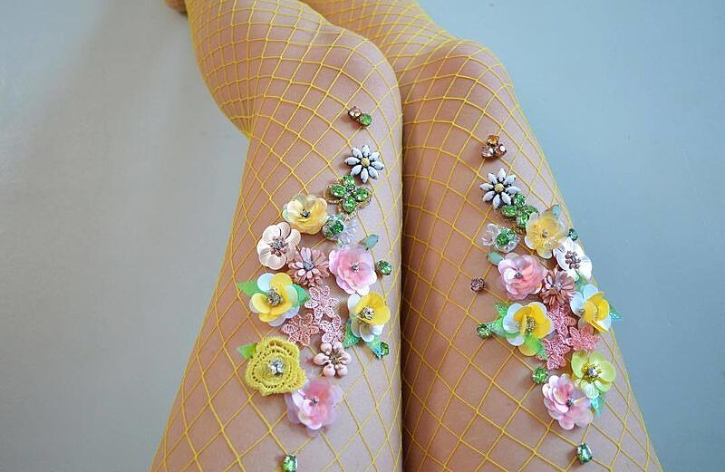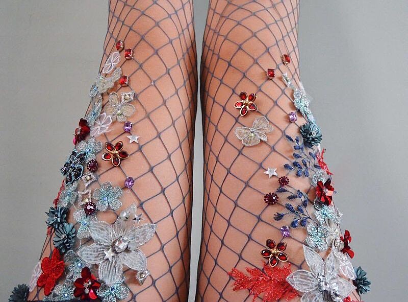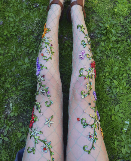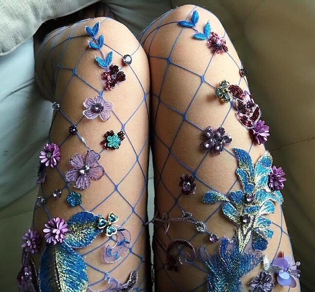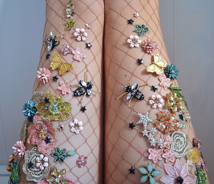 刺繡、釘珠、水鑽、亮片...等等不同極具女性化的素材疊搭下,演繹出每件網襪的獨一無二,時而夢幻,時而優雅,完全像春日裡的花園美的讓人心醉。